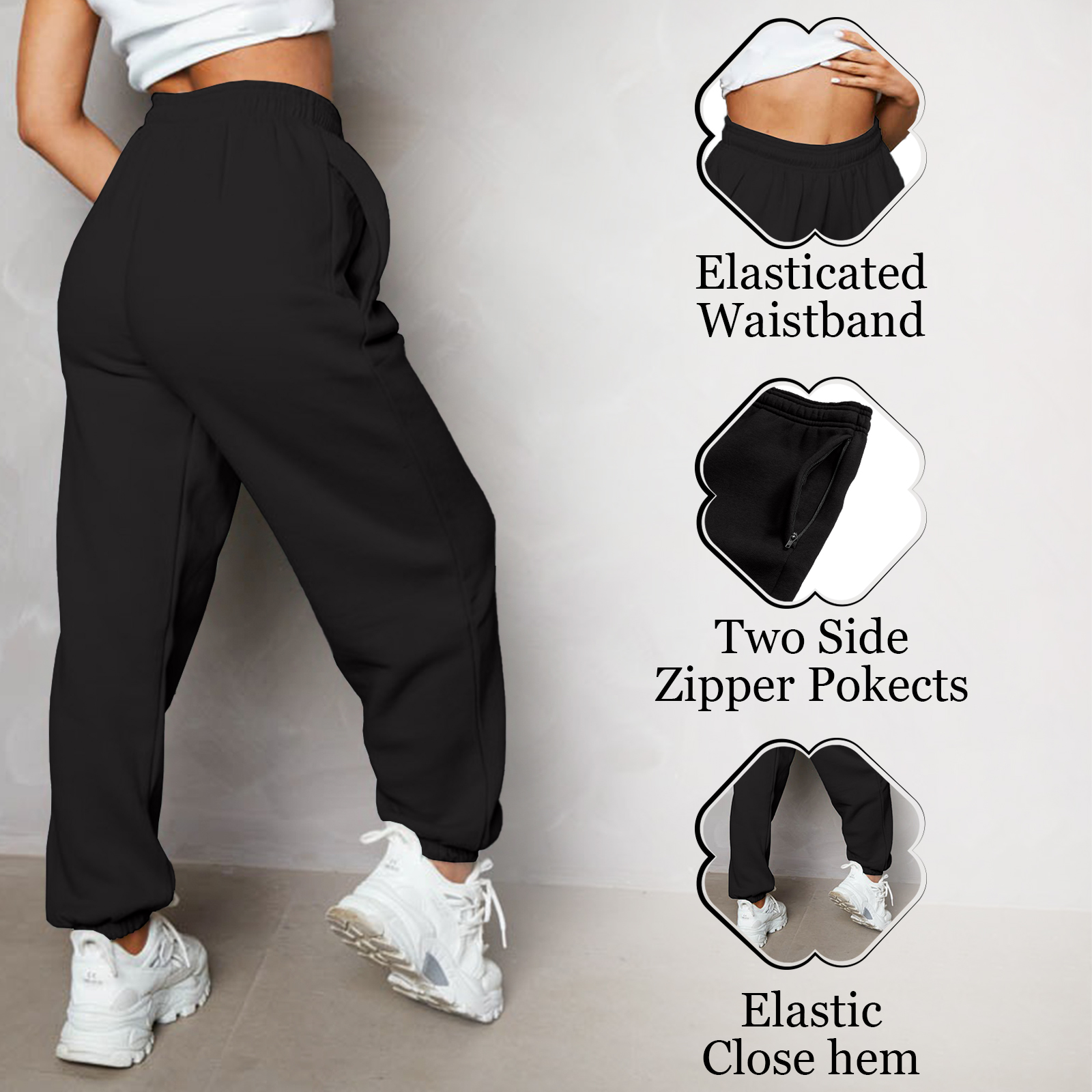 Women’s Regular Fit Joggers with Zipper Pockets