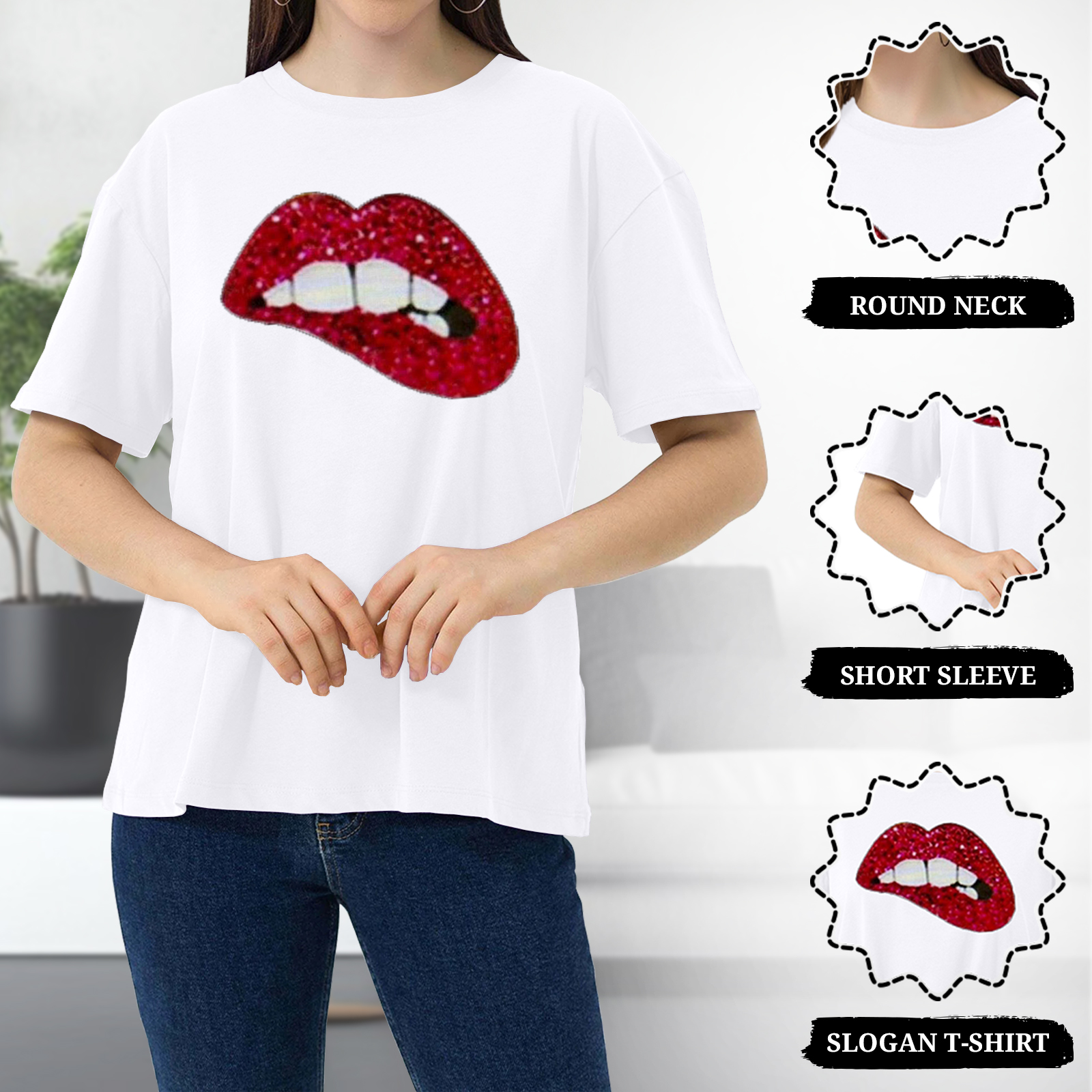 Chic, comfy & stylish — Women’s Oversized Drop Shoulder Red Lips Print T-Shirt is perfect for casual outings or everyday street style!